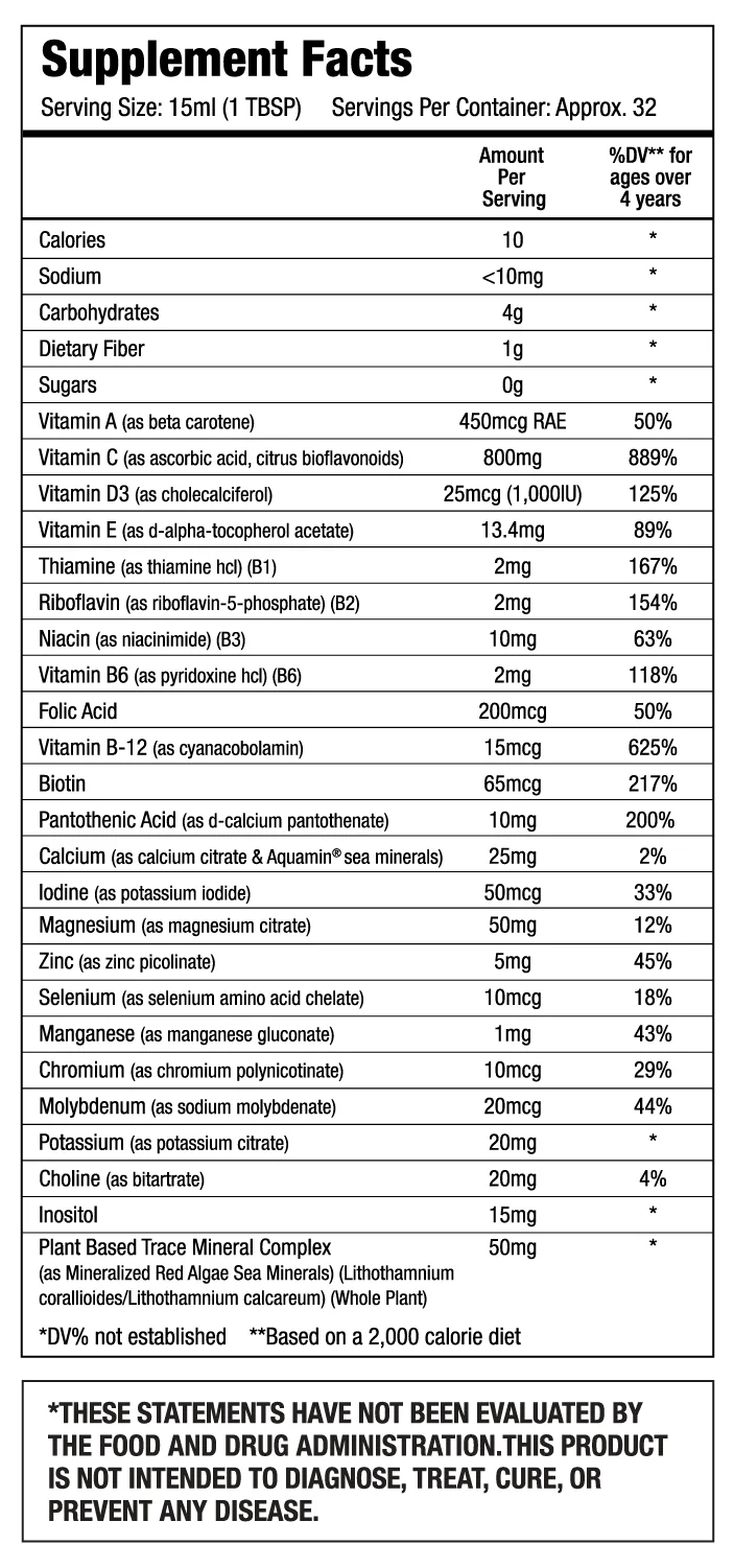 Packed with 31 VITAMINS and MINERALS, as well as 20 pure fruit and vegetable extracts, this multi vitamin is specially made for KIDS in a convenient, easy-to-take liquid vitamin form. Mix it into juice, water, SMOOTHIES, milk, YOGURT, or cereal for a daily IMMUNE SYSTEM and metabolism boost.