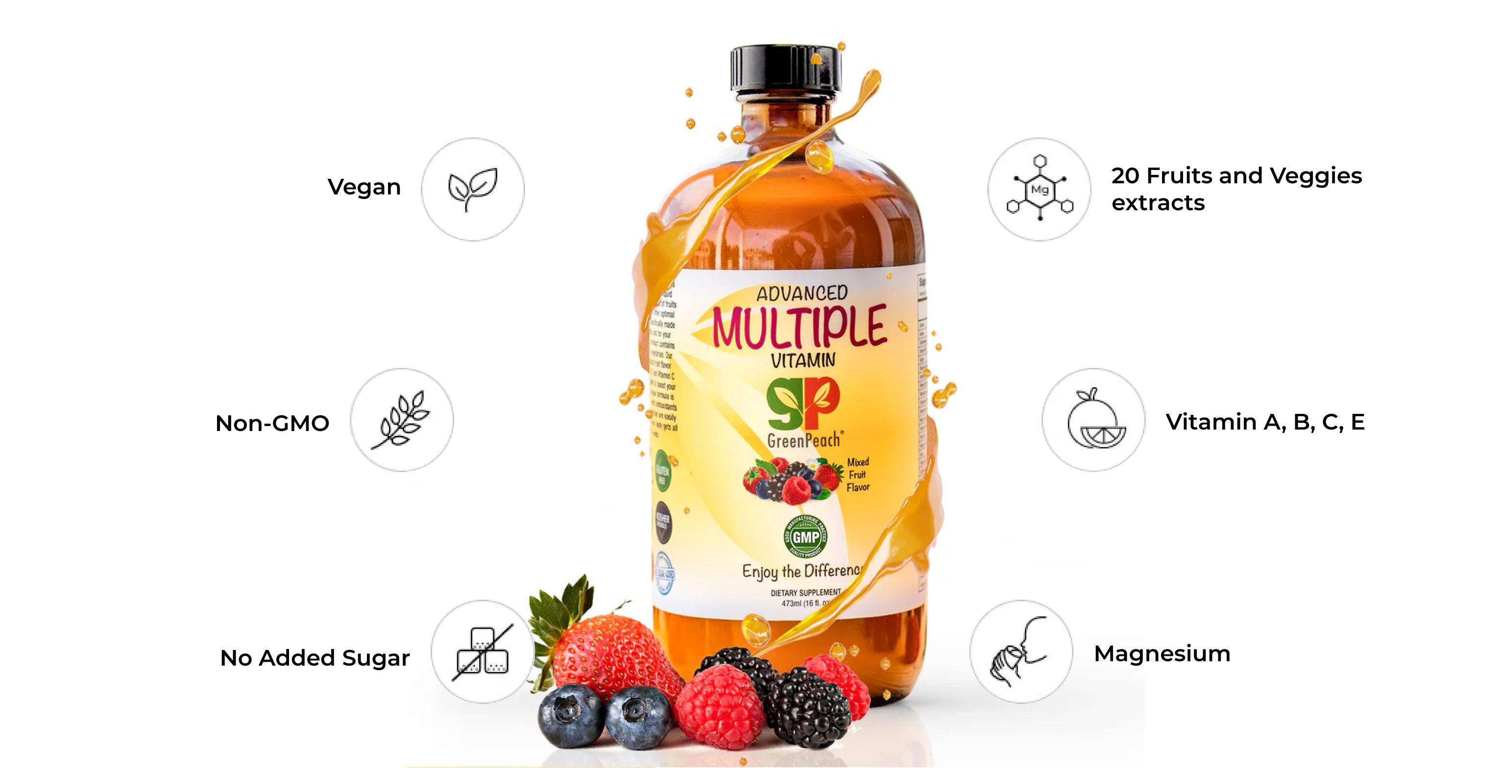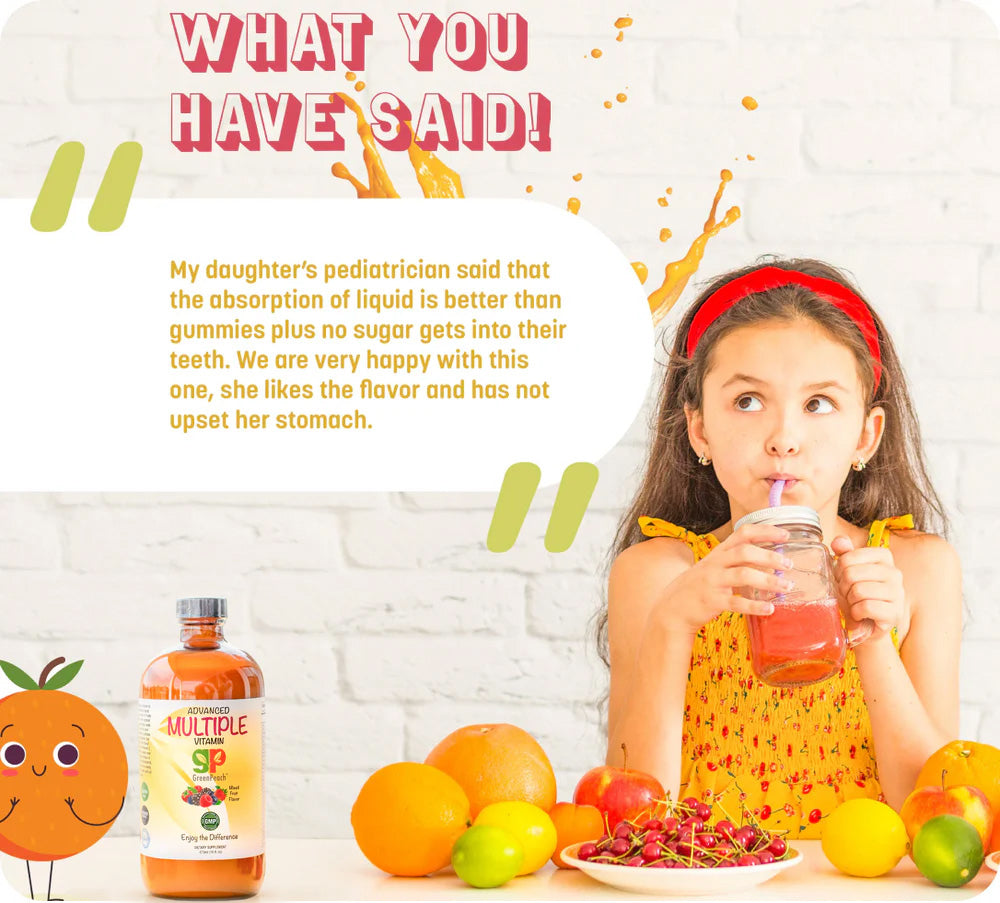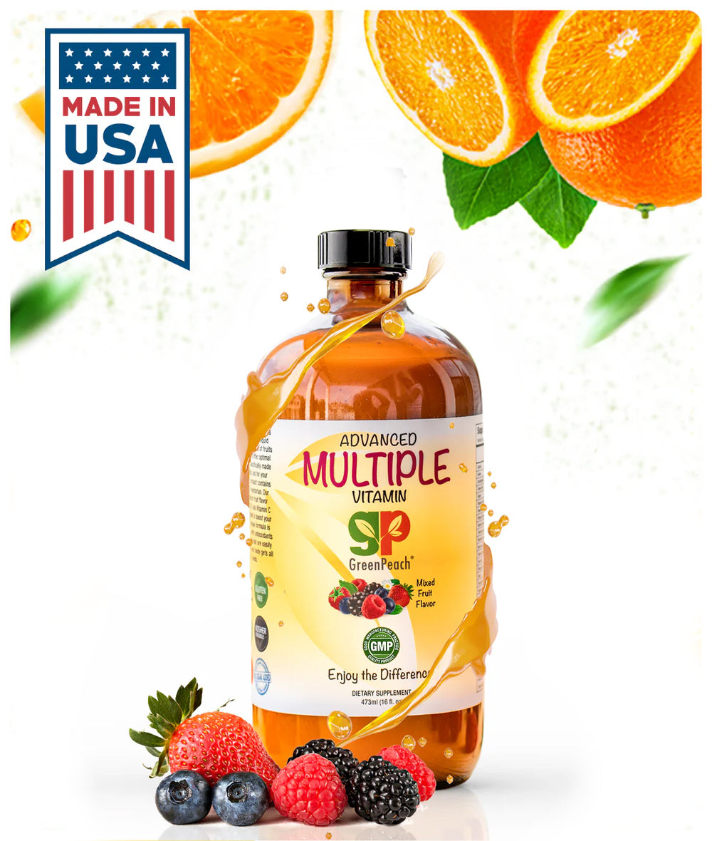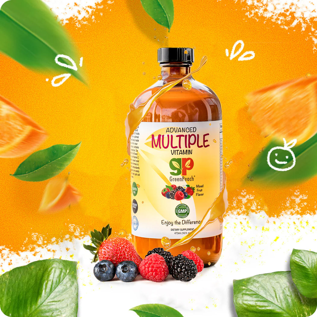 GreenPeach Advanced Multiple Vitamin is formulated as a LIQUID FOR EASY DIGESTION and quick, optimal absorption. Faster-acting and EASIER TO DIGEST than gummy vitamins for kids, these vegan multivitamins are packed with ANTIOXIDANTS and essential AMINO ACIDS to ensure that bodies of all ages get the nutrients they need.
