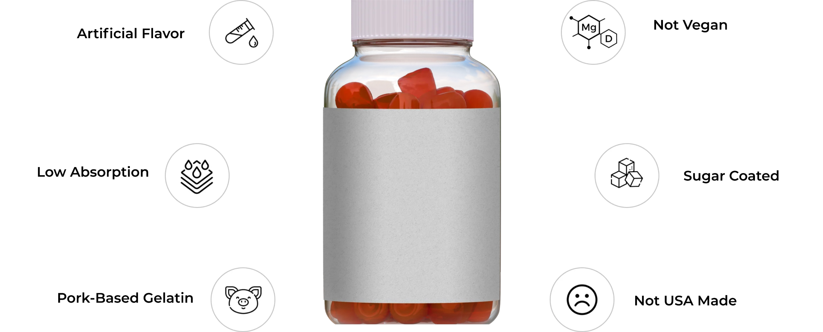Hidden sugars in kids' supplements can lead to various health issues, including obesity, tooth decay, and an increased risk of chronic diseases like diabetes. They provide empty calories without essential nutrients which disrupt natural appetite regulation. That’s why we strictly avoid hidden sugars, ensuring that all sweetness comes solely from natural fruits.